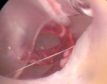 Failure of epithelial migration, oedema, proliferative changes, ruptured TM, sebaceous hyperplasia, apocrine dilation, calcification, OM
