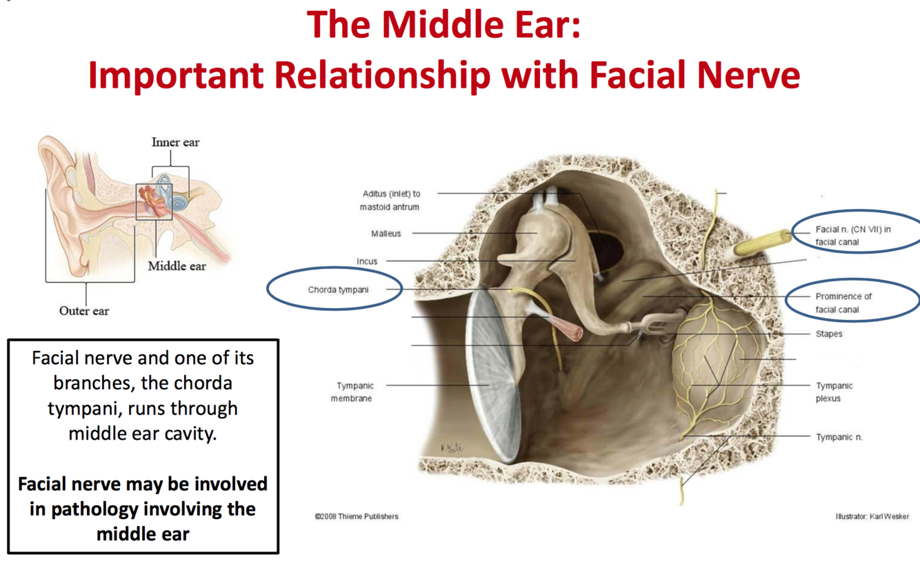 which branch of facial nerve runs throught the middle ear?