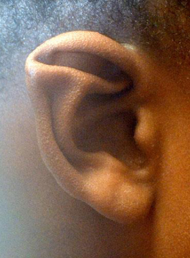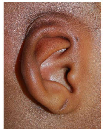 Anotia refers to complete absence of the ear structures, while lop ear is an ear that is typically constricted and has an overhang or hooding of the superior helical rim. Crumple ear is a form of constricted ear with variable cartilage abnormalities that give it an irregular appearance. Lastly, Stahl ear refers to an otherwise normal-sized ear with a third crus, usually accompanied by an evagination of the helical rim.