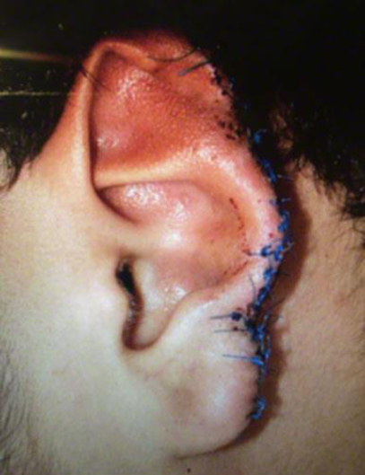 While composite grafting of large ear avulsions has a globally poor outcome, the avulsed fragment in this patient is a thin piece of the helical rim that includes only a small piece of the helical rim cartilage. The shape of the defect, minimal cartilage involvement, and the fact that this was a clean injury in a young patient, makes an initial attempt to replace the tissue as a composite graft the best initial option. At worst, the tissue acts to cover the wound until a definitive reconstruction can be planned. At best, the tissue survives to some degree and salvages some of the delicate and very hard to replace helical rim contour. This patient described in the clinical scenario had 80% survival of the tissue with this technique and required no further reconstruction.