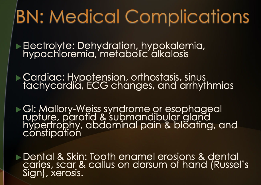 What medical complications occur due to BN?