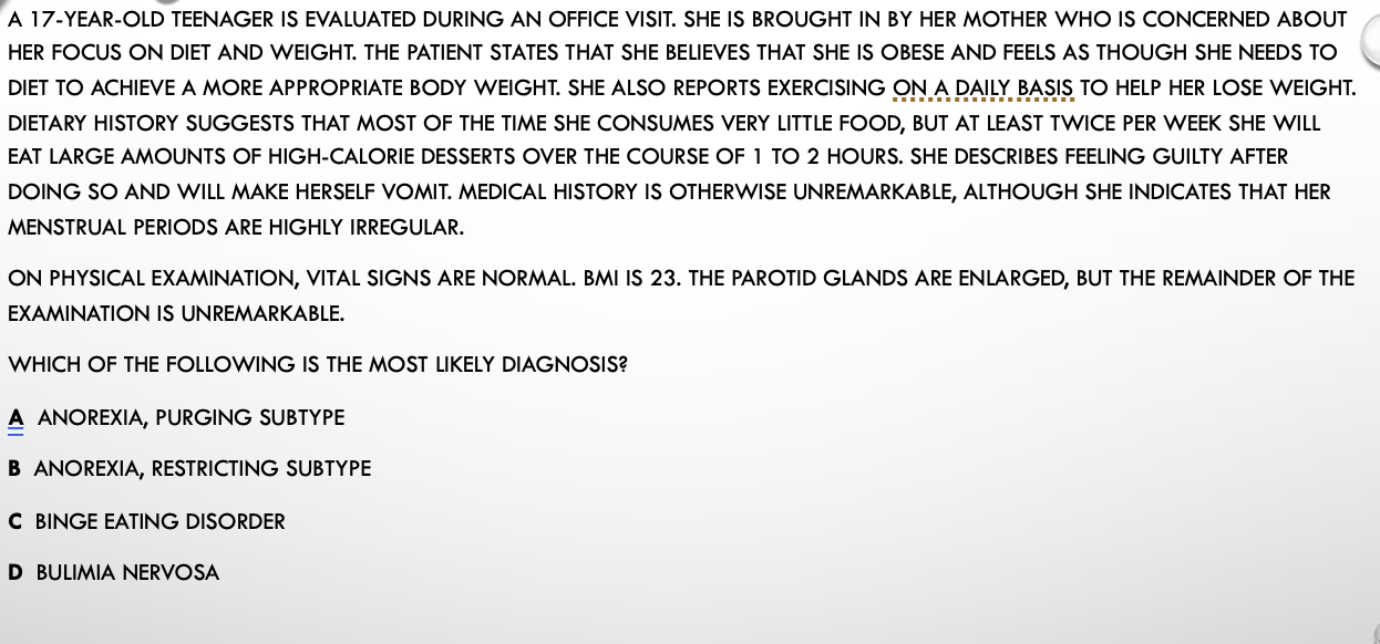 Dx eating disorder