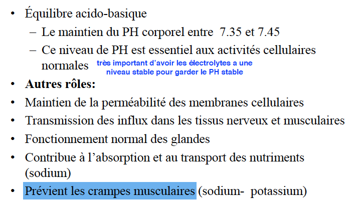 Quels sont les roles des électrolytes?