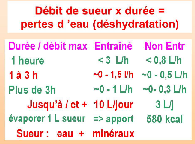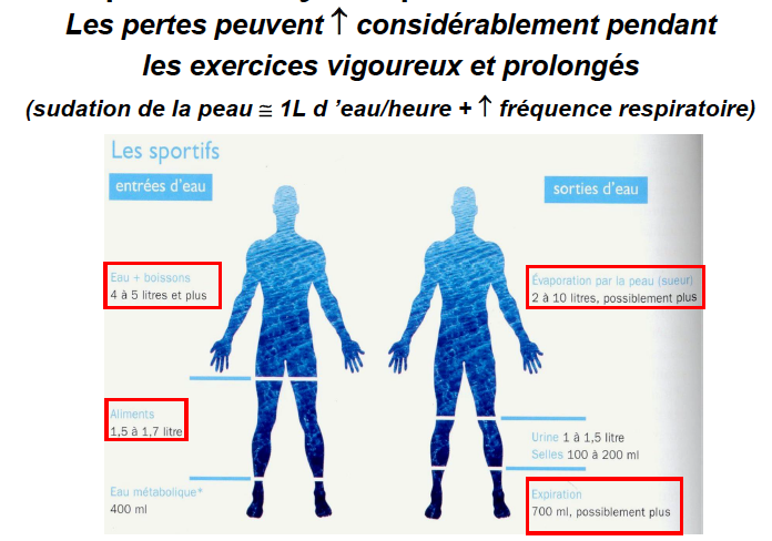 les athlètes doivent plus augmente leur pertes et donc le consommation d’eau
