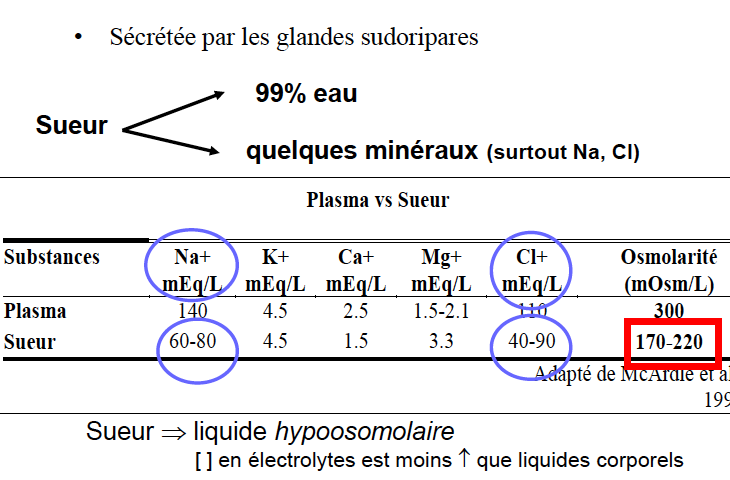 Quelles est la composition de la sueur?