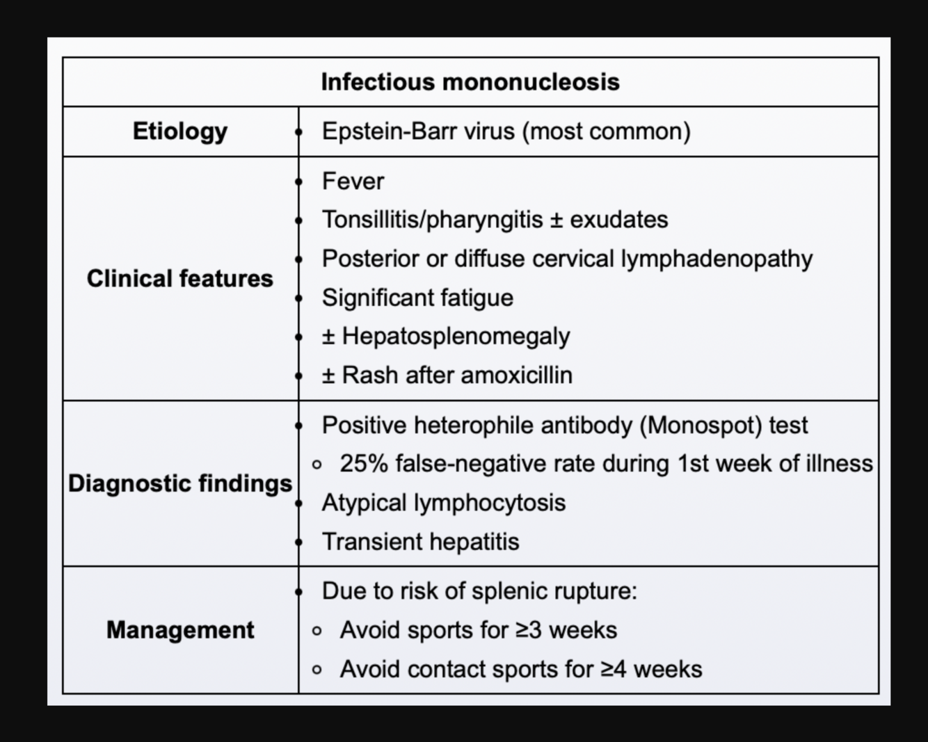 What are the classic symptoms of infectious mononucleosis?