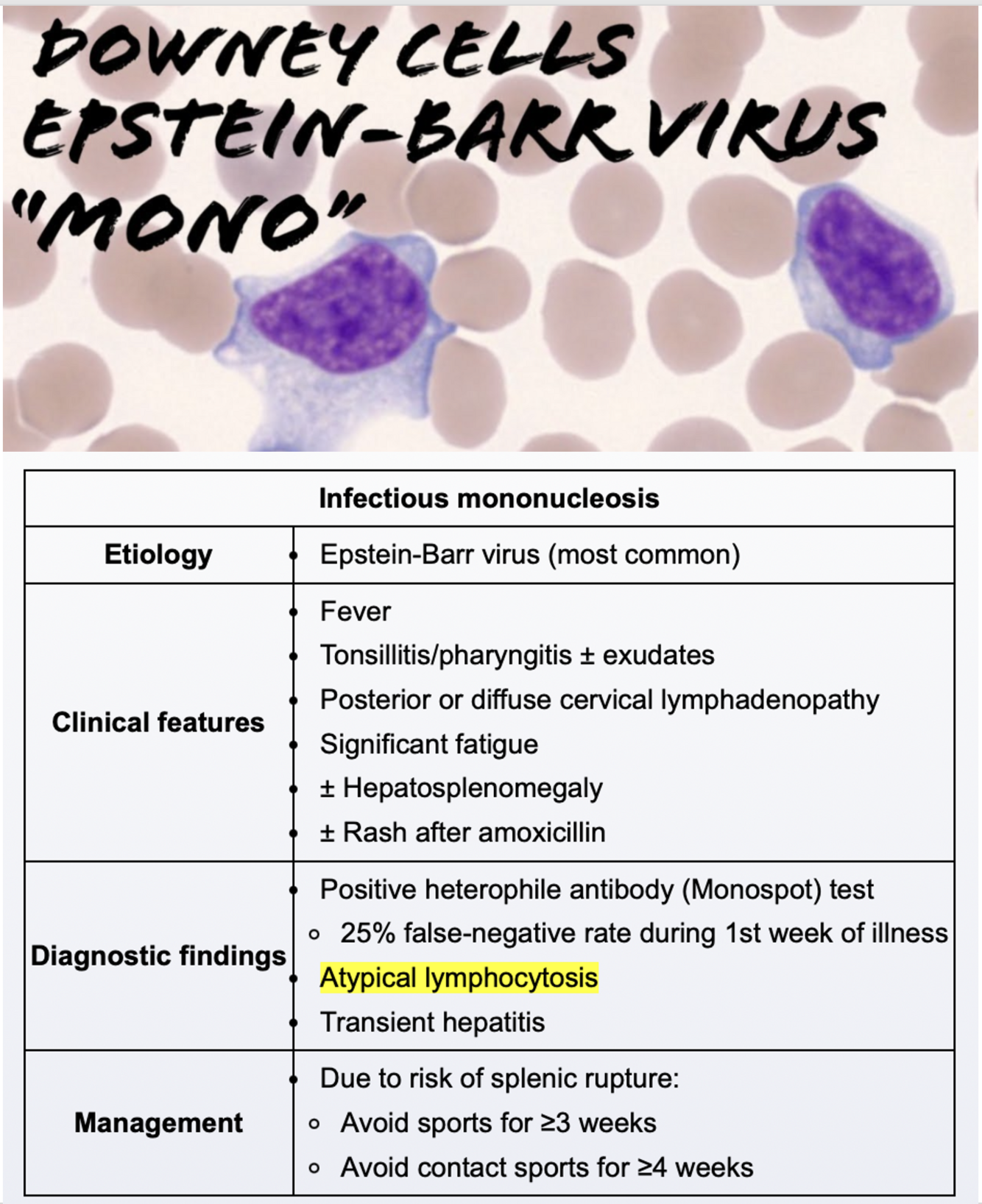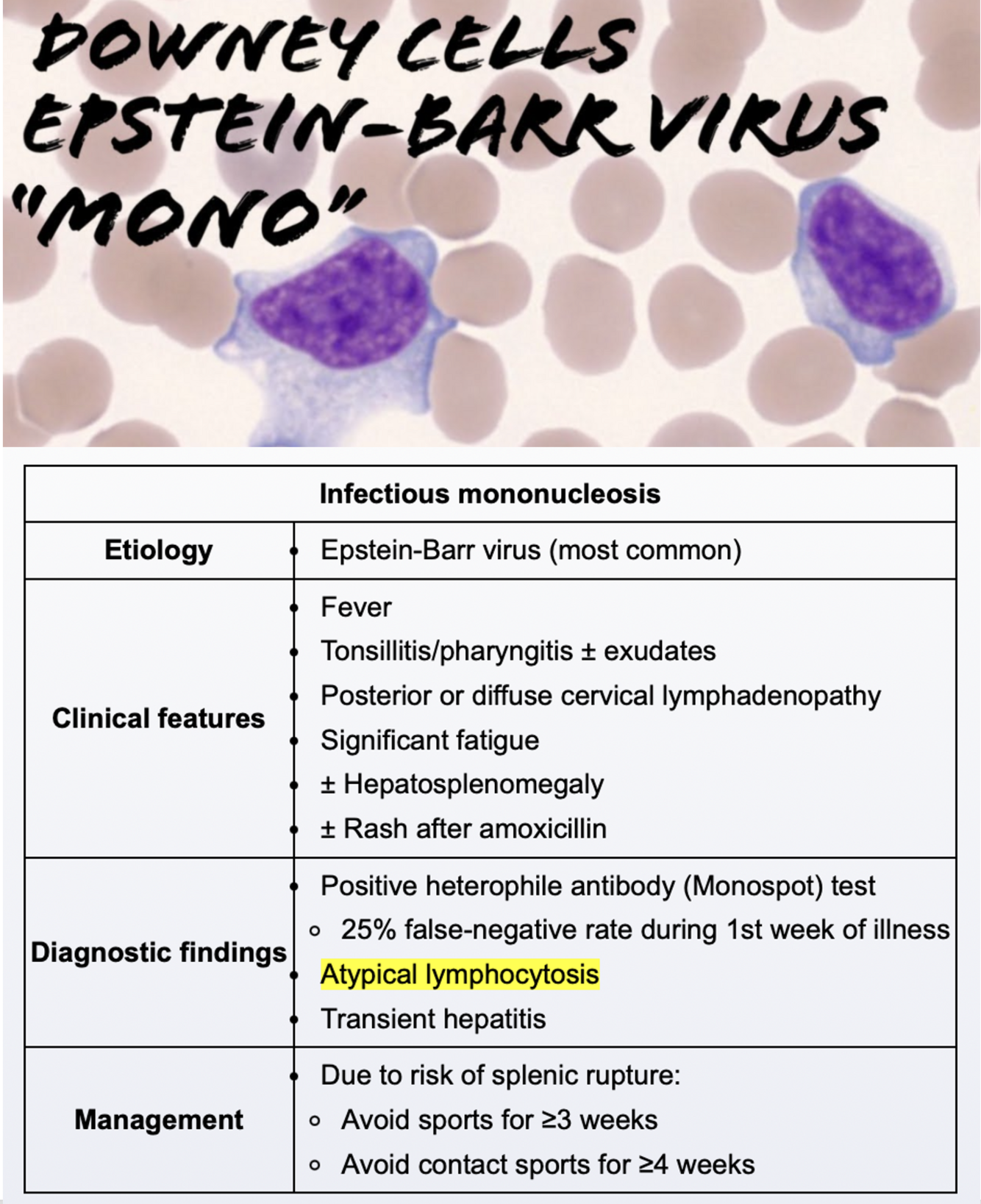 Atypical lymphocytes with abundant basophilic cytoplasm seen in EBV infection.