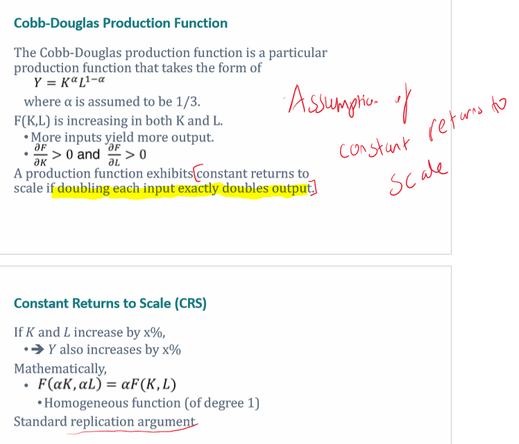 How do you calculate if the production function has increasing or decreasing returns to scale