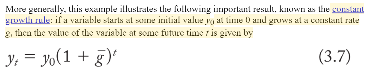 If y grows at a rate of g percent per year, than the number of years it takes y to double is approx. equal to