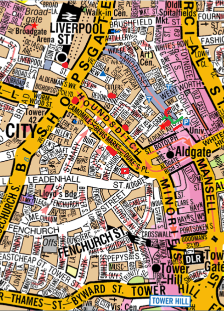 Beech st One Way Area: Barbican Arrival Details: Chiswell st, North Bunhill Row, L Banner st, L Golden lane, L beech st SDOL Departure details: LOL Beech st Notes: FAL Lambs passage onto L Bunhill row
