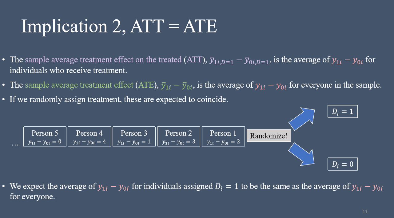 Avg. Potential outcome of treatment for treated individuals - Avg. Potential outcome in absence of treatment for treated individuals