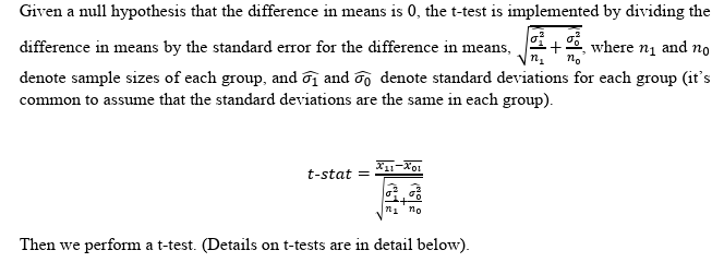 E(potential outcome in absence of treatment given treated indv.) = E (potential outcome in absence of treatement, given control group)