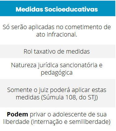 como já dito, as medidas socioeducativas possui rol taxativo, além do mais só são aplicadas…