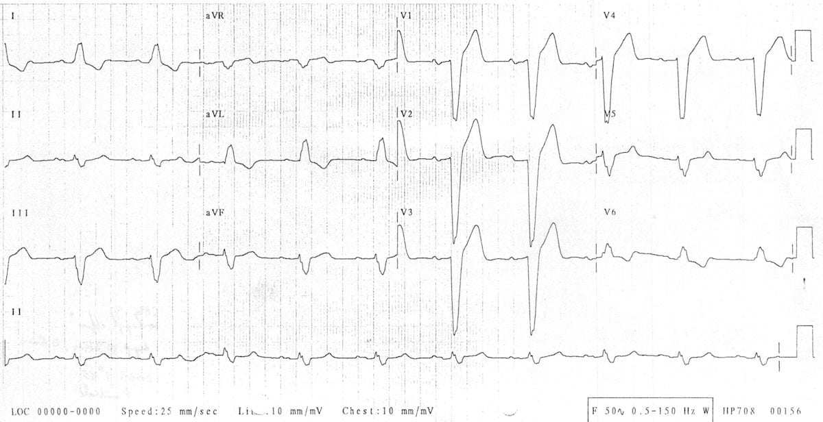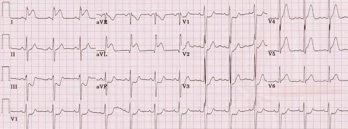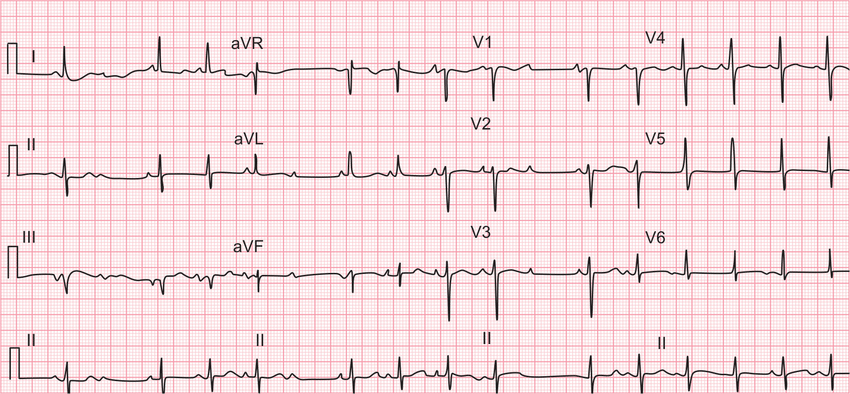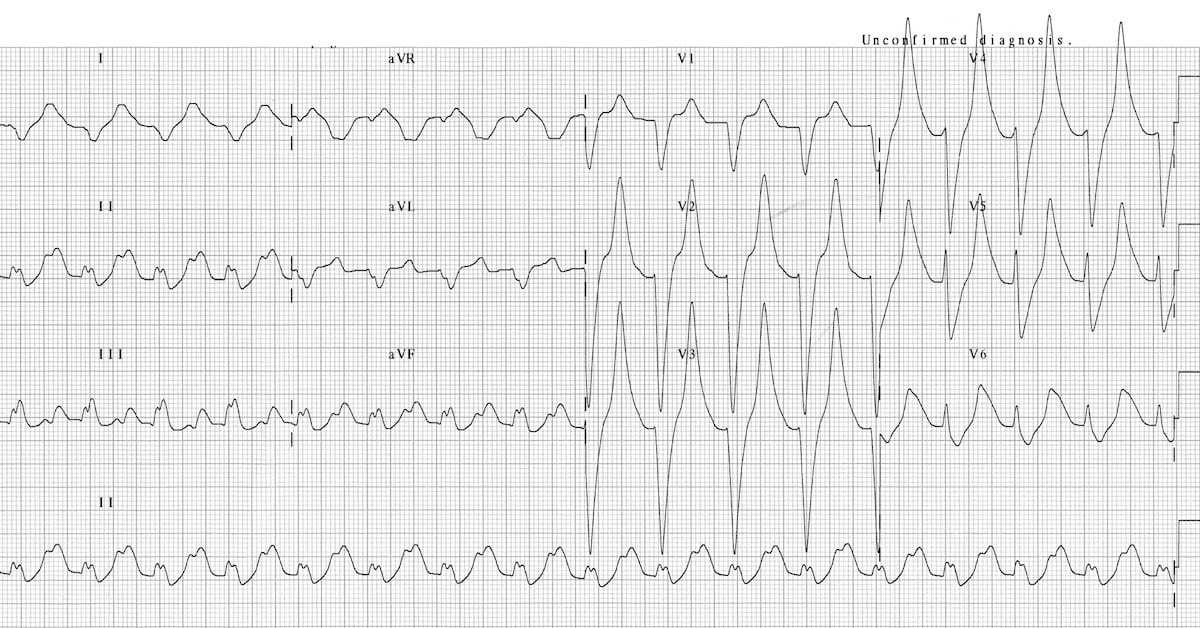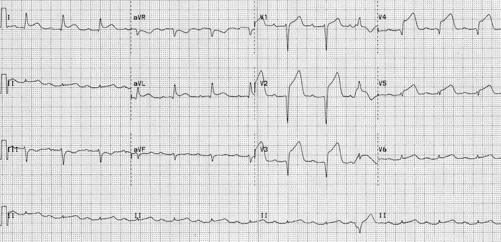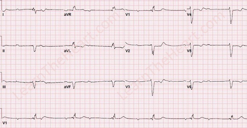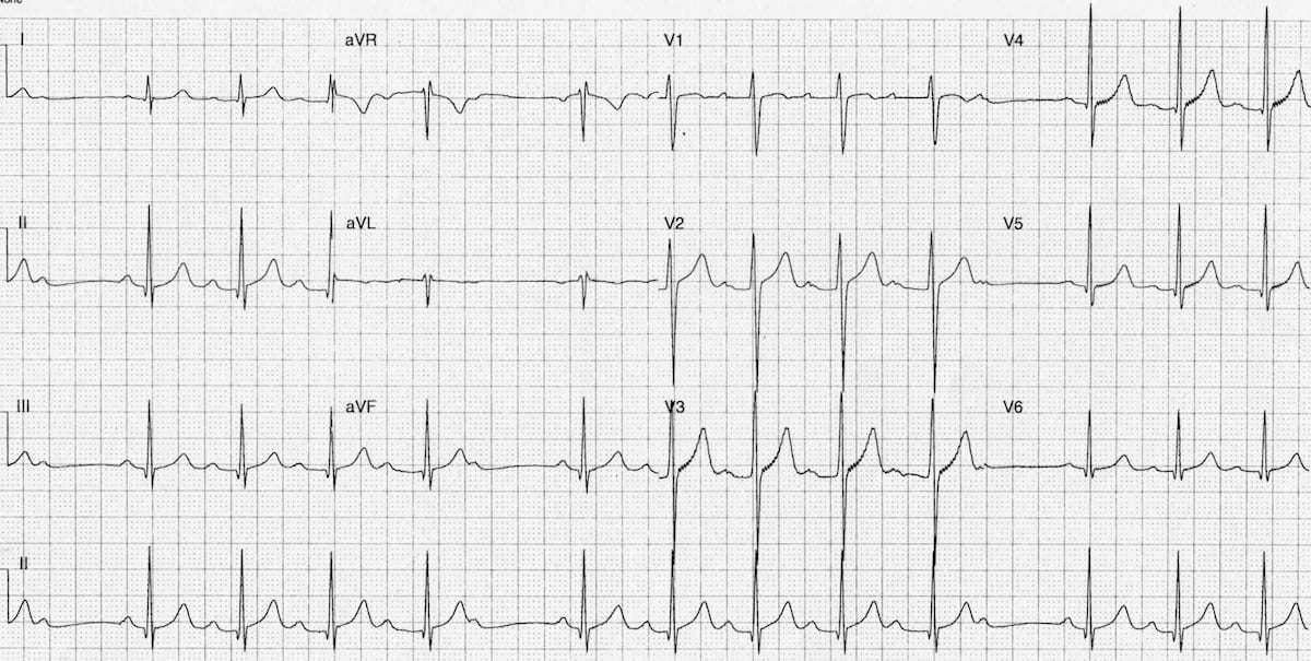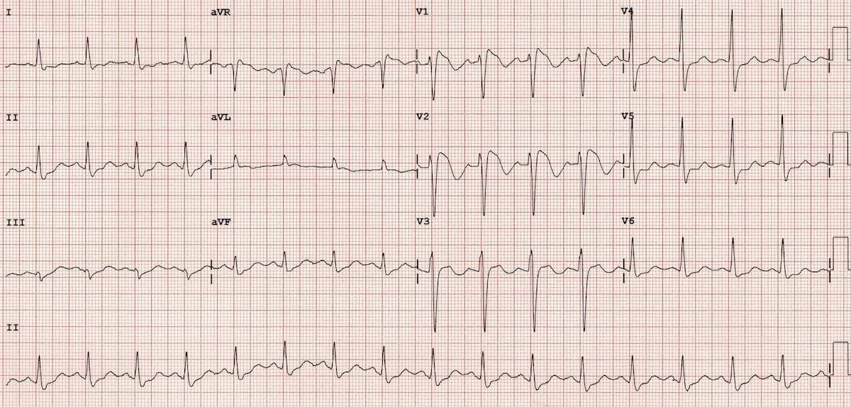 Look at the overlapping of the QRS complexes and there is QRS complex widening in other leads