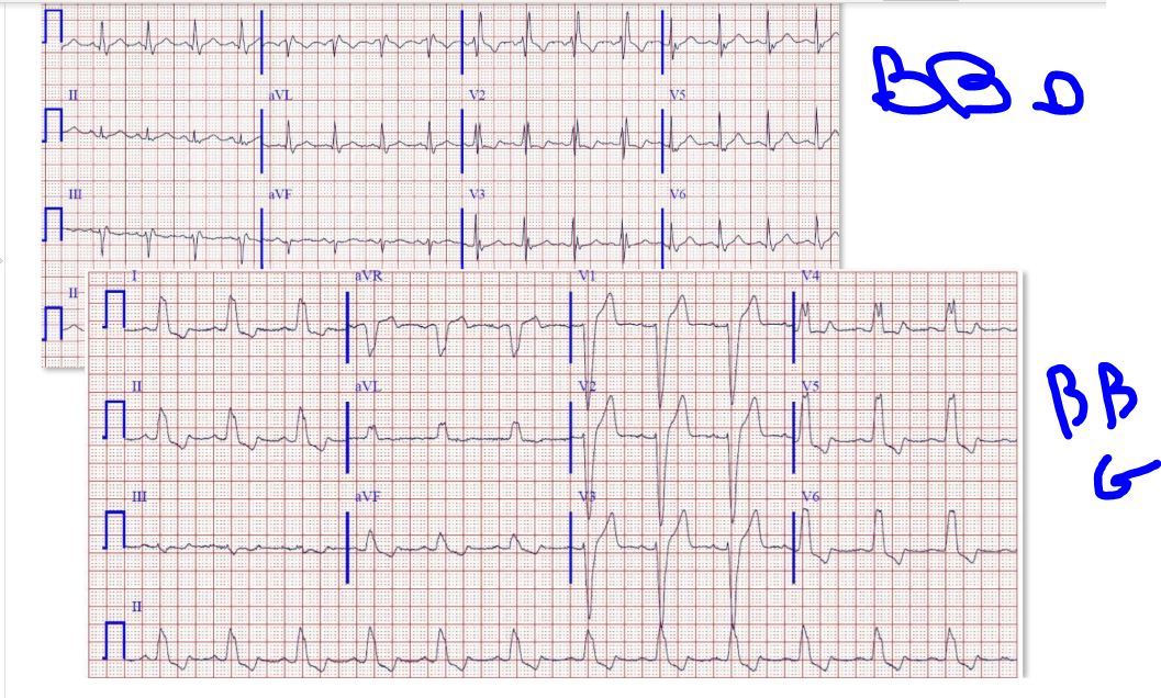 on doit penser automatiquement à un trouble de conduction si … ( deux trucs)