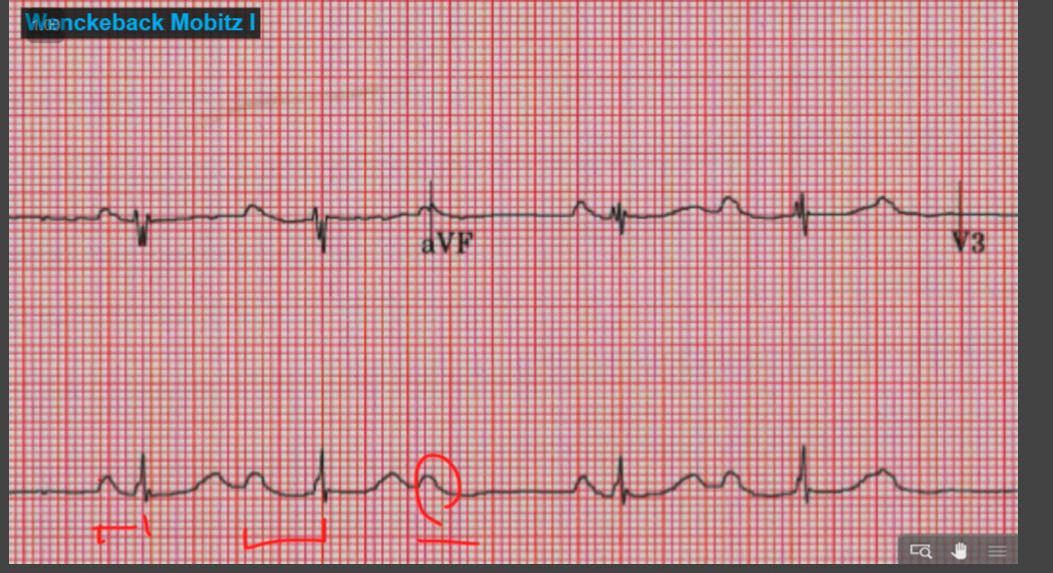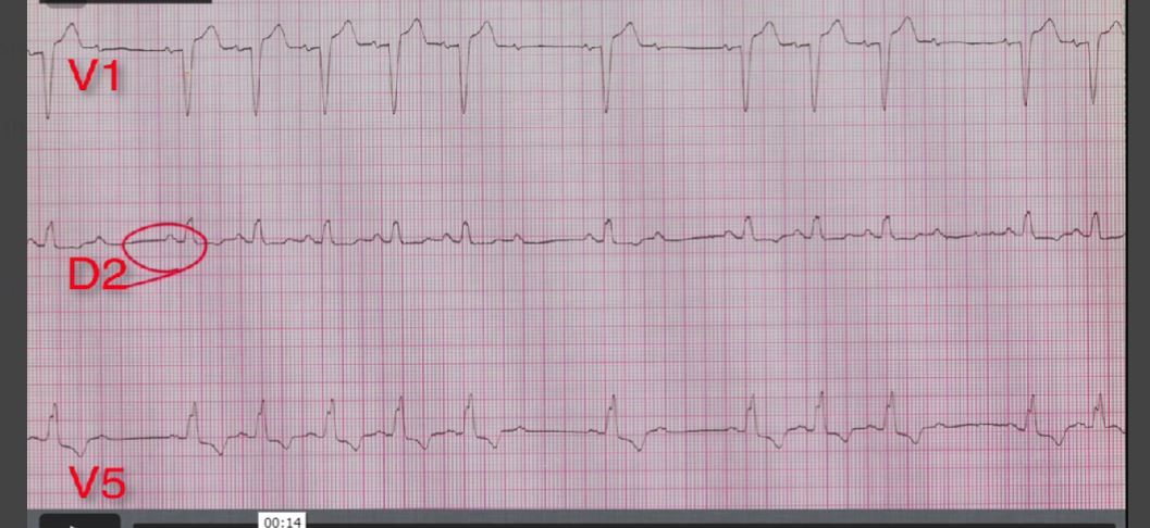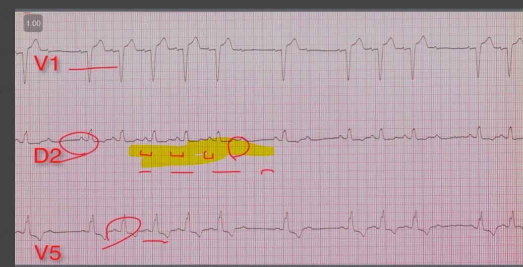 on voit bien que PR s’allonge , pour ensuite onde P qui N,as pas de QRS