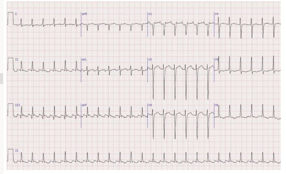 mais pourrait très bien etre tachychardie supraventriculaire AVEC TRROUBLE DE CONDUCTION!!