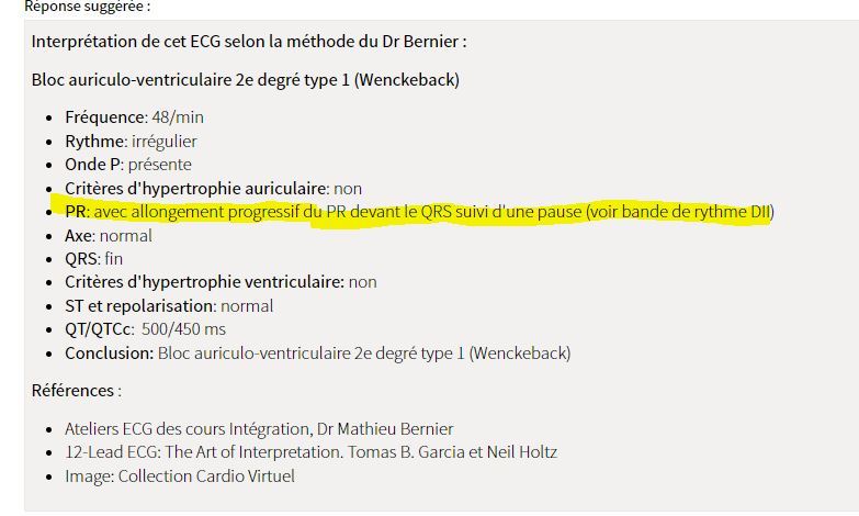 Pck PR reste CONSTANT ( ne s’allonge pas ) jusqu’à une onde P bloqué ,