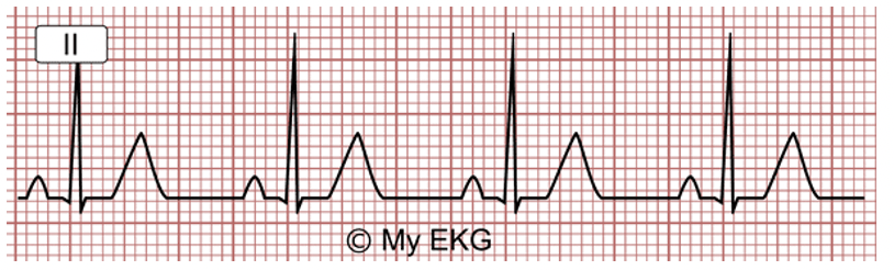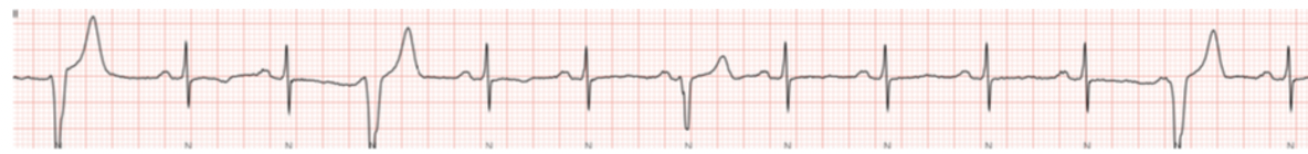 Modifications observables : on observe des complexes QRS plus larges et isolé des complexes normaux.