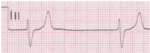 Il s’agit d’une dépolarisation complète du cœur qui n’est pas réversible de manière spontanée. Il y a une absence complète de rythme. C’est-à-dire qu’il y a une absence d’excitabilité des cellules cardiaques avec pour cause une dépolarisation complète des cellules.