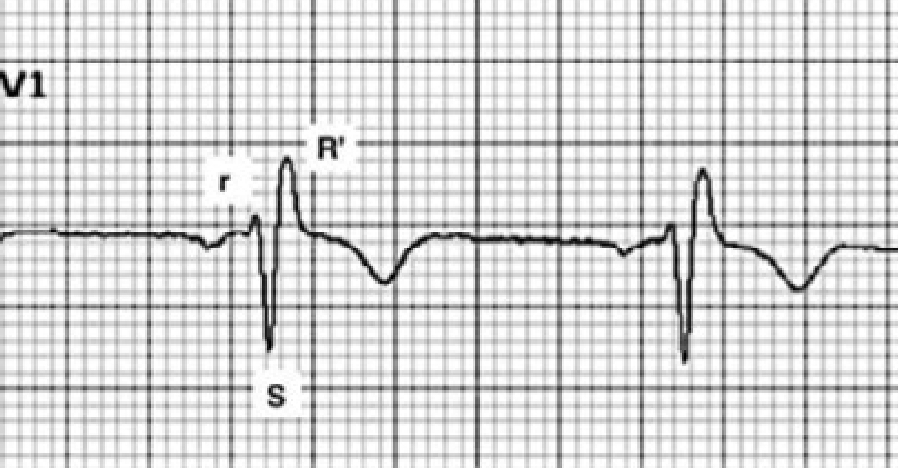 Ocorre um distúrbio de condução pelo ramo direito, com pequeno atraso final, mas o QRS não dura mais que 120 ms