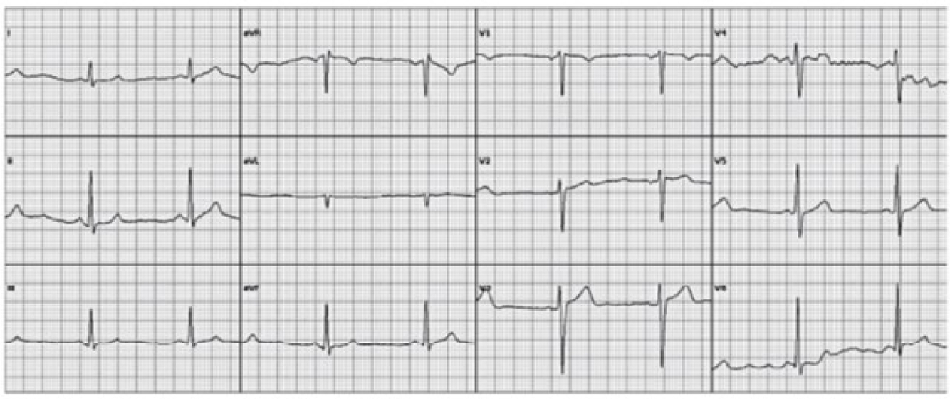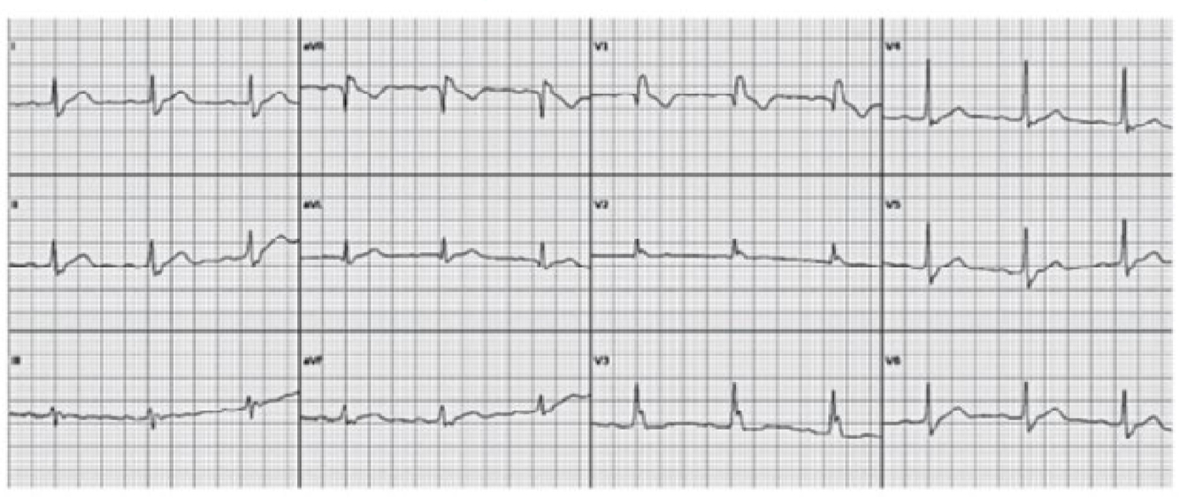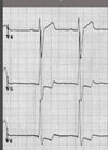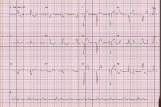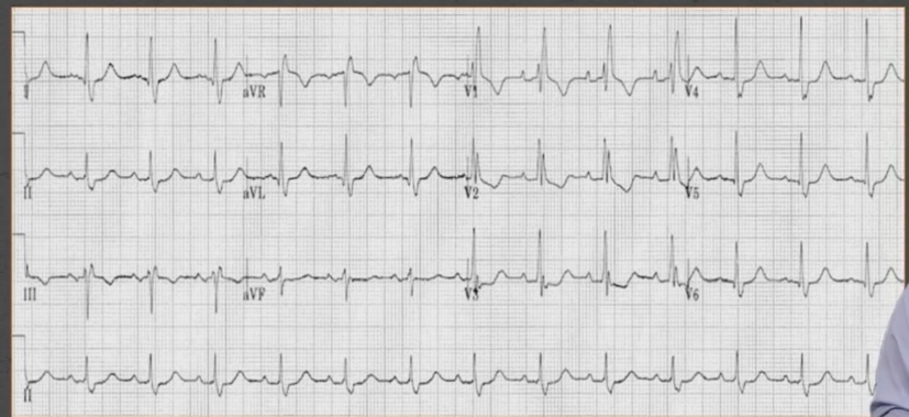 esse ECG indica que um BRD, onde teremos em V1 um QRS alargado, (mais de 3 quadradros)