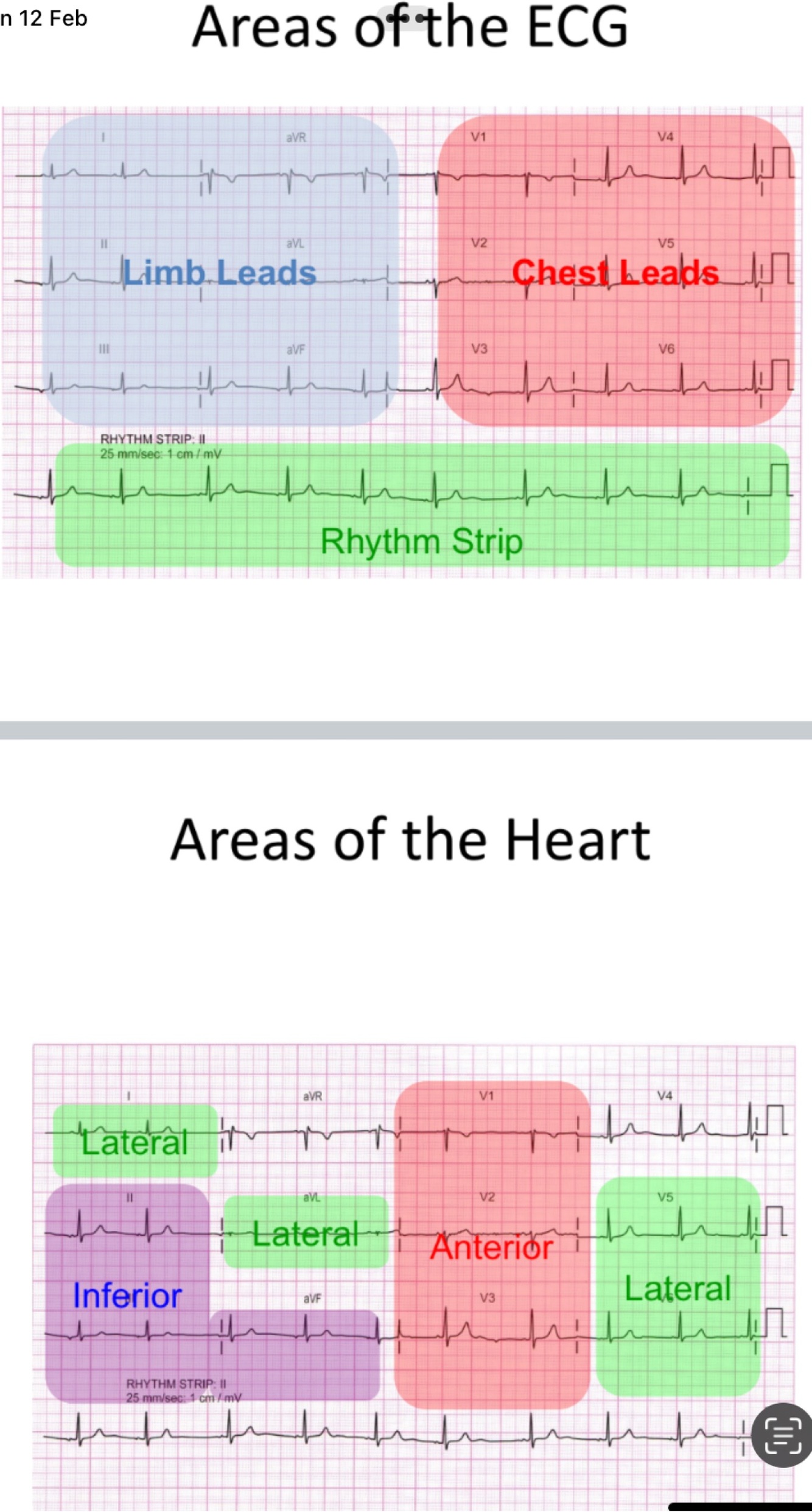 What do the different areas of the ECG mean?