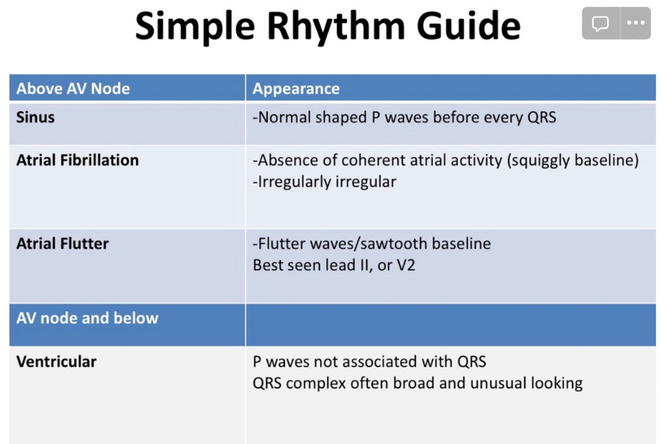 Appearance of rhythms above vs below AV node