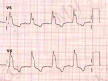 QSJ - Tachy à QRS large sans onde P, QRS régulier et rythme ventriculaire de plus de 120bpm