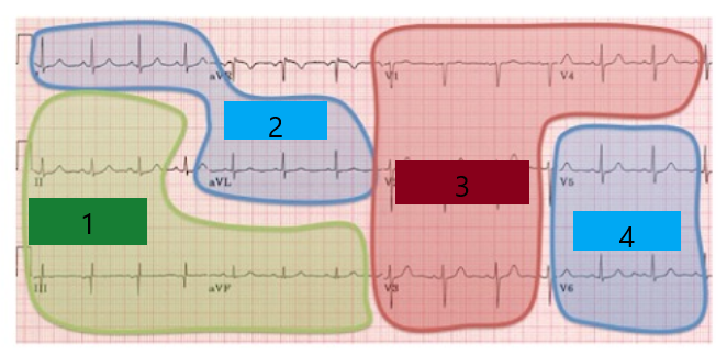 À quelle territoire cardiaque les sections bleues (#2 & #4) correspondent-elles?