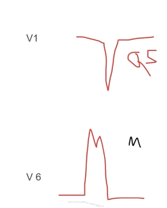 Broad S-waves in leads V1 and V2 and broad, frequently notched, R-wave in V5 and V6