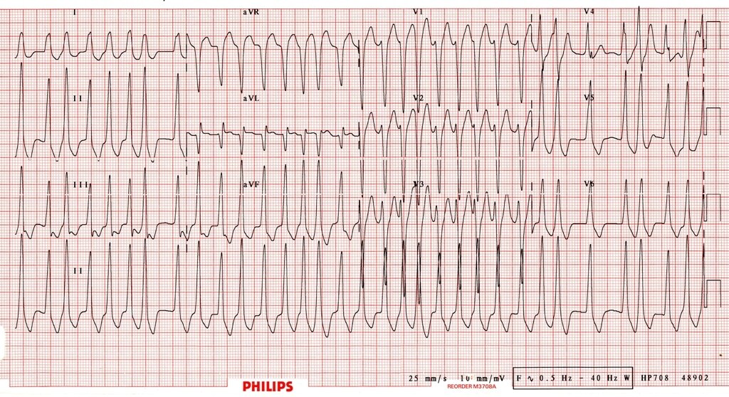 20-year old female presenting with palpitations and presyncope, BP 75/50