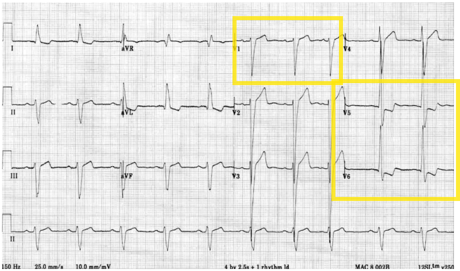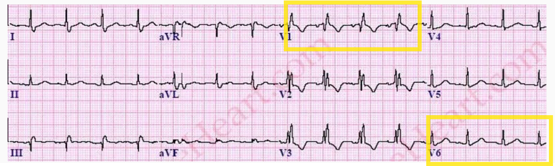 Si on l’observe sur V1-V3 (elle n’est généralement pas présente sur ces dérivations).
