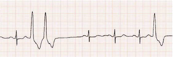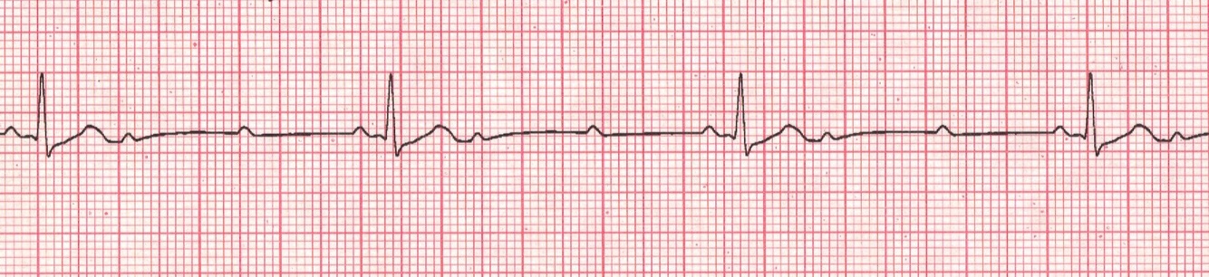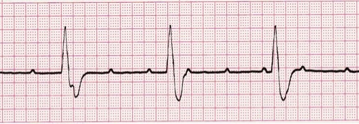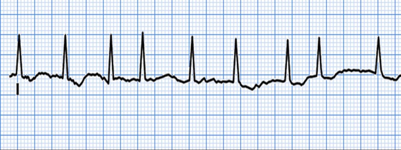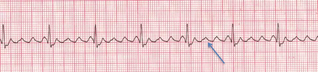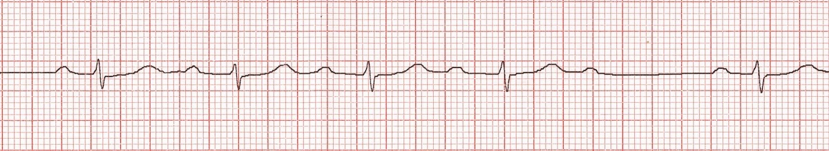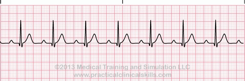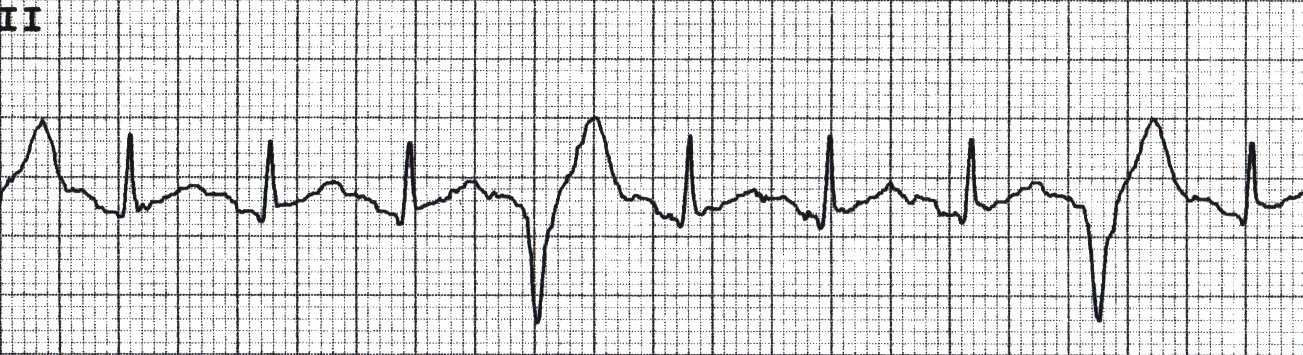 (progressive lengthening of PR interval culminating in a dropped QRS)