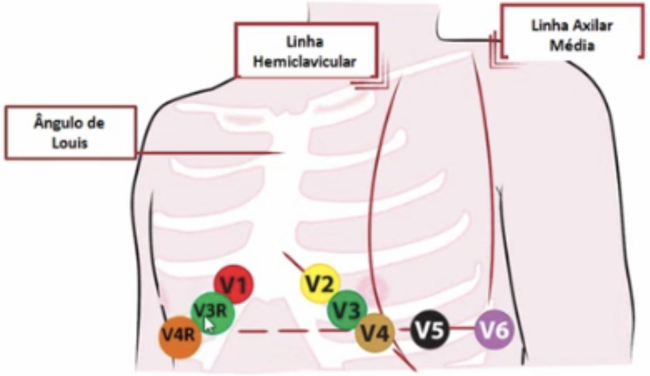 V1, V2, V3, V4, V5, V6. * Pode associar V3R e V4R. Derivações Unipolares.