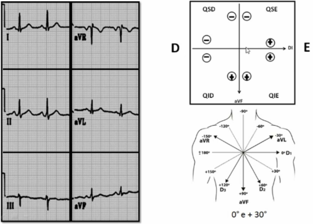 Calcule o eixo elétrico ventricular e atrial do ECG.