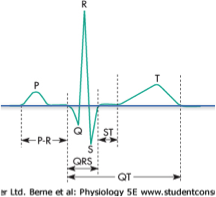 Time from the start of the QRS complex to the end of the T wave, represents the time for ventricular depolarization and repolarization. This interval changes according to the heart rate and is not constant.