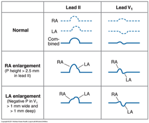 The P wave represents depolarization of the right atrium followed quickly by depolarization of the left atrium (superimposed). They are seen in lead II and V1
