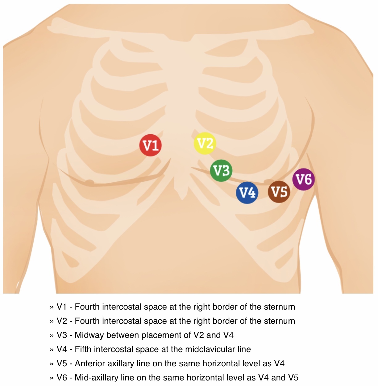Chest leads: V1, V2, V3, V4, V5, and V6.
