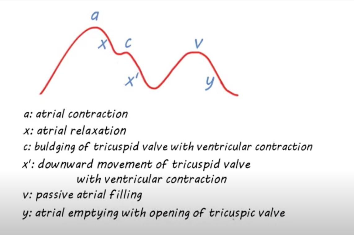 outline the waves in the JVP and what they signify