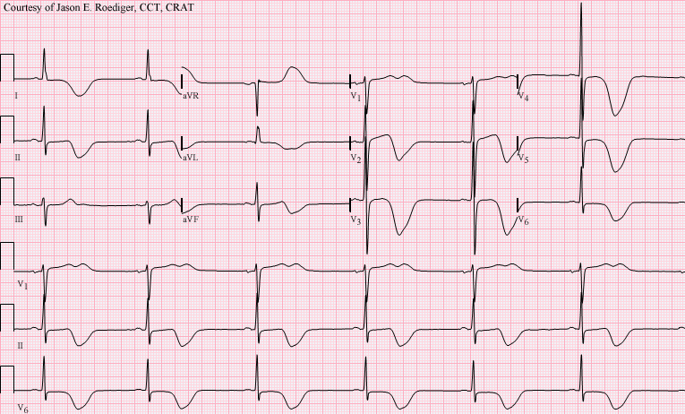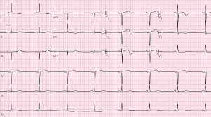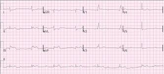 Un patient de 70 ans se présente à l’urgence avec des douleurs dans la poitrine. Il est hypotendu à 70/40 mmHg. Son ECG démontre :