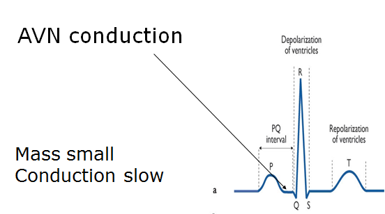 Where is AVN conduction in the PQRST complex?