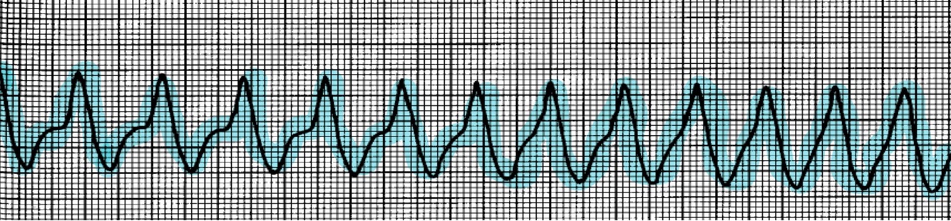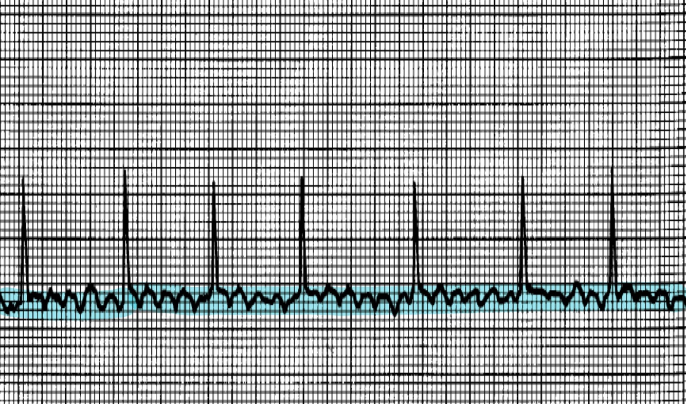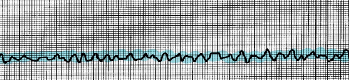 Every vertical line above the square is 3 sec — Use three lines, making 6 secs and count the R’s that are within to estimate HR (6=60, 8=80)