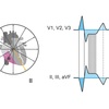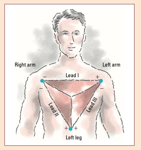 tracks the atrial impulse from atria through AV node, bundle of His, and right/left bundle branches