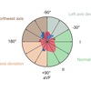 A biphasic deflection will occur on an ECG if the electrical current is traveling in a direction ___