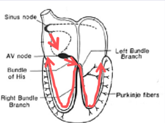 What is the order of structures involved in normal impulse conduction?