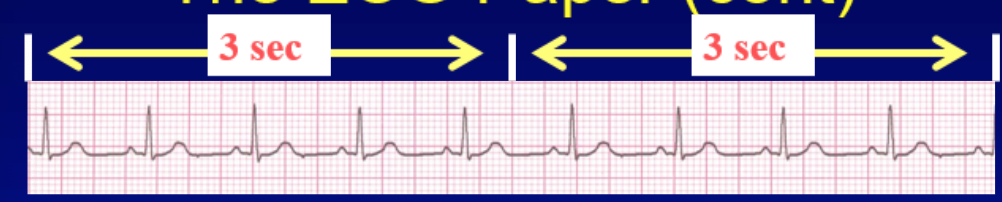 What vertical marking is present on the ECG paper that is there to help calculate the heart rate?