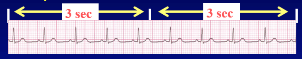 count the number of R waves in a 6 second rhythm strip and then multiply by 10