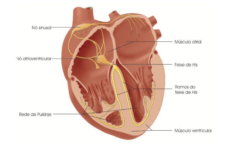 Qual o caminho do impulso cardíaco após o nódulo AV?