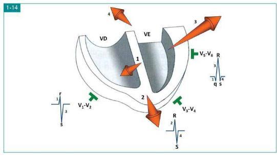 A despolarização ventricular ocorre através de três vetores. Quais são eles?